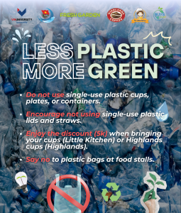 In response to the 2025 Action Month for Environment and World Environment Day (June 5) theme “Beat Plastic Pollution,” VinUni has partnered with on-campus food and beverage providers to implement plastic reduction measures since June 2025. Key actions include eliminating plastic bags and cup carriers for staff and students, reducing single-use plastic items like lids and straws, and offering discounts for customers using reusable containers. This initiative has reduced campus plastic waste, promoted sustainable lifestyle practices, and generated waste management cost savings.
