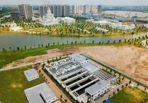 VinUni operates a three-stage wastewater treatment system that performs preliminary treatment of all wastewater generated on campus before it is transferred to the centralized treatment facility of Vinhomes Ocean Park, which applies advanced biological technology combined with modern membrane filtration. The VinUni system has an average capacity of 2,566 m³ per month, treating nearly 31,000 m³ of wastewater during the 2023–2024 academic year, ensuring that all treated water meets the QCVN 14:2025/BTNMT national environmental standard. After treatment, a portion of the water is reused within the area’s rivers and lakes, helping to minimize ecological impacts, conserve water resources, and maintain a sustainable landscape across the community.